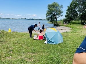 Policjanci prowadzą działania w ramach ogólnopolskiej akcji informacyjno- edukacyjnej ,,Kręci mnie bezpieczeństwo nad wodą’’. Projekt dotyczy bezpiecznego wypoczynku osób przebywających w wodzie lub nad wodą, a jego bezpośrednimi adresatami są zarówno dzieci, młodzież jak i osoby dorosłe.