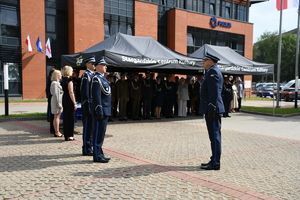 W dalszej części gospodarz uroczystości Komendant Powiatowy Policji w Stargardzie powitał przybyłych na dzisiejsze święto zaproszonych gości, policjantki, policjantów, pracowników Policji oraz ich najbliższych i rodziny.