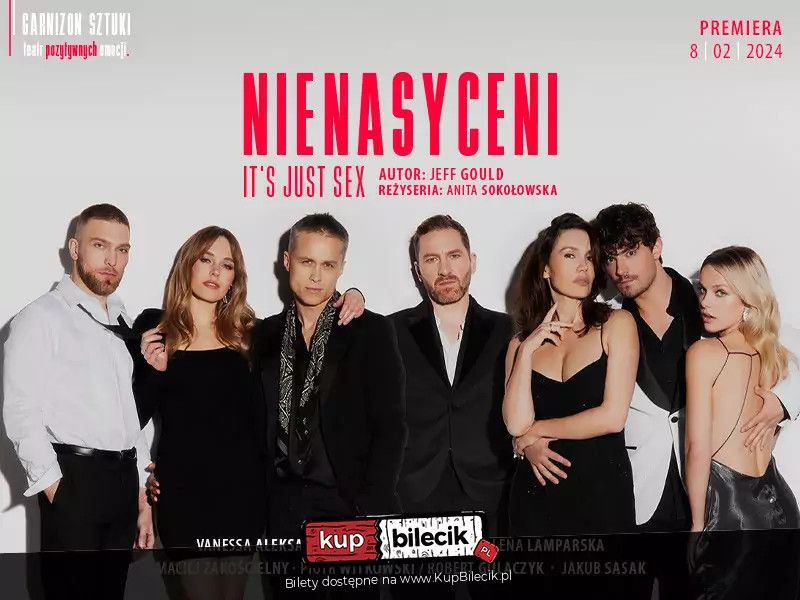 bilety: Nienasyceni (tytuł oryginalny: "It"s just sex") to kolejna artystyczna propozycja Garnizonu Sztuki - teatru pozytywnych emocji. Spektakl Nienasyceni, w reżyserii Anity Sokołowskiej, powstał na podstawie tekstu amerykańskiego dramaturga Jeffa Goulda "It"s just sex". Nienasyceni artyści: Vanessa Aleksander, Olga Bołądź / Paulina Chruściel, Magdalena Lamparska, Jakub Sasak i inniNienasyceni to pełen emocji, prowokujący do myślenia komediodramat, który żadnego widza nie pozostawi obojętnym. To inne spojrzenie na miłość, wierność, pożądanie, relacje i komunikację w związku. To spektakl o sztuce bycia razem, o tym, czego potrzebuje związek, aby po latach nie tylko przetrwać, ale też rozkwitać. To miał być wieczór pełen relaksu i dobrej zabawy, bo jak śpiewa klasyk "gdy nie ma w domu dzieci, to jesteśmy niegrzeczni". Tymczasem, gdy alkohol płynie strumieniami, problemy i tajemnice wychodzą na jaw, wzajemne zaufanie zostaje wystawione na próbę, a granice przekroczone. Niewinna impreza zamienia się w spotkanie pełne nieoczekiwanych zwrotów akcji, które na zawsze zmieni życie trzech par przyjaciół. Jaki będzie finał tego wieczoru Sami jesteśmy ciekawi. Bilety do nabycia na: KupBilecik.pl |